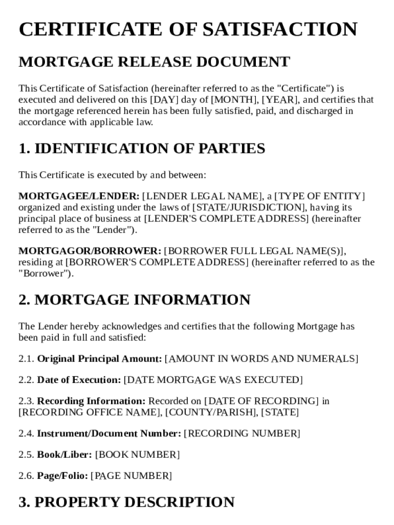 Get the free Certificate of Satisfaction Mortgage Template