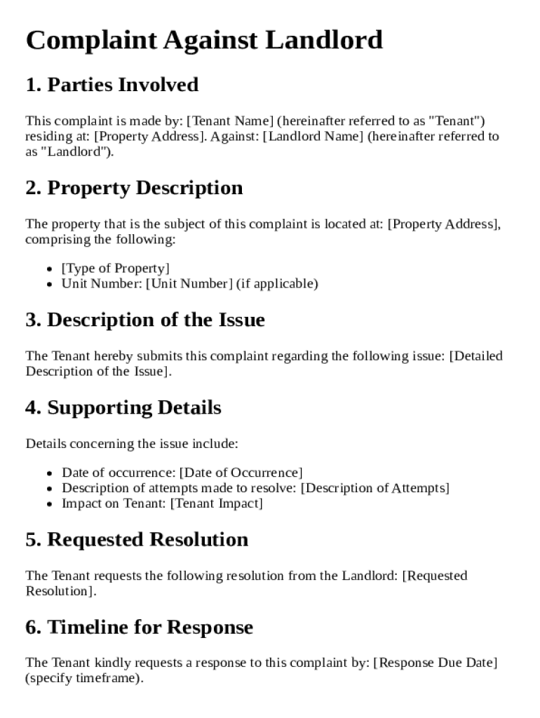 Get the free Complaint Against Landlord Template