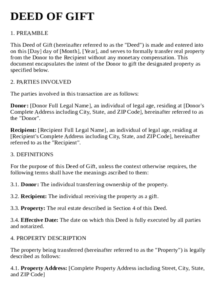 Get the free Deed of Gift Template