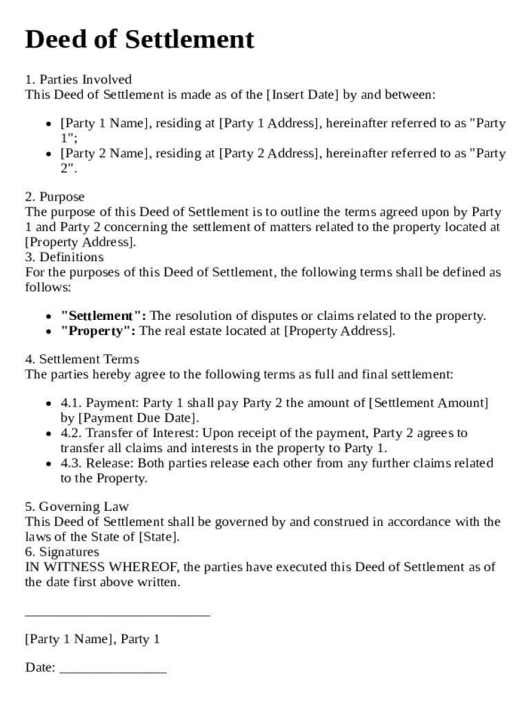 Get the free Deed of Settlement Template