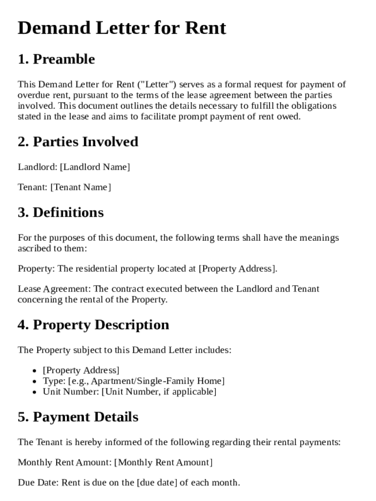 Understanding key terms related to rental agreements is vital for creating an effective demand letter. Definitions help clarify the legal standing of both parties.