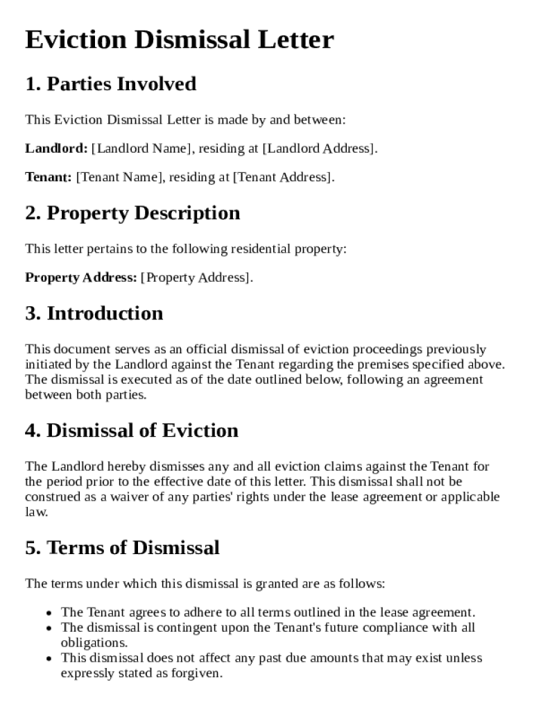 Get the free Eviction Dismissal Letter Template