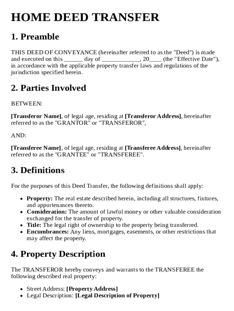 Get the free Home Deed Transfer Template