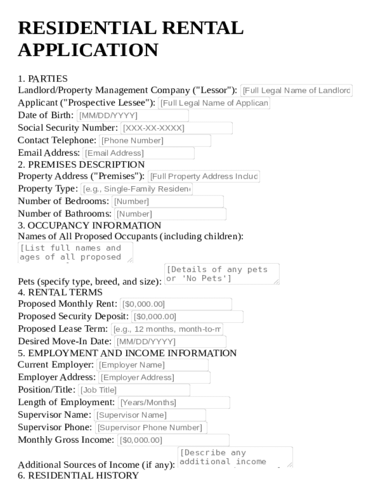 This document is intended for prospective tenants to apply for rental housing. It collects personal, financial, and rental history information from applicants to assess their eligibility for rental.