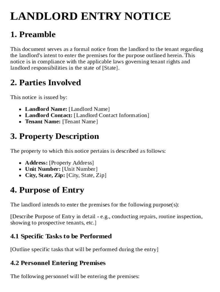 Understanding the parties involved in the landlord entry notice is vital for clarity. The notice should contain details about both the landlord and tenant.