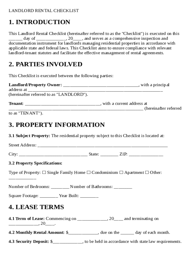 Is there a recommended format for a Landlord Rental Checklist Template?