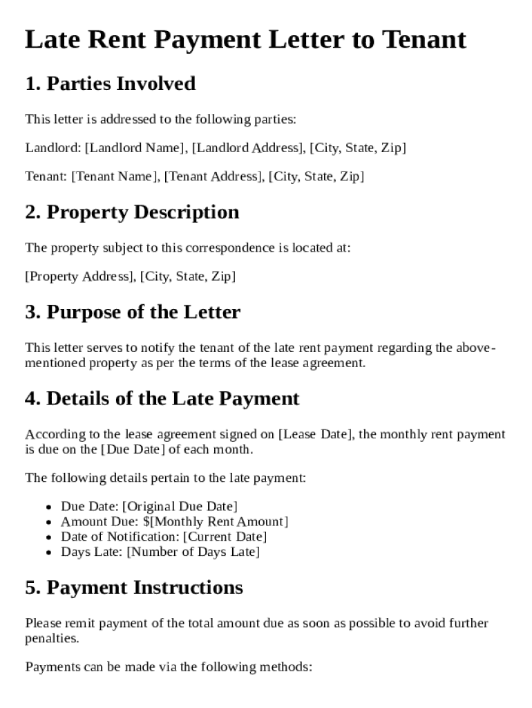 A late rent payment letter is a formal document notifying a tenant or landlord that rent has not been received by the due date.