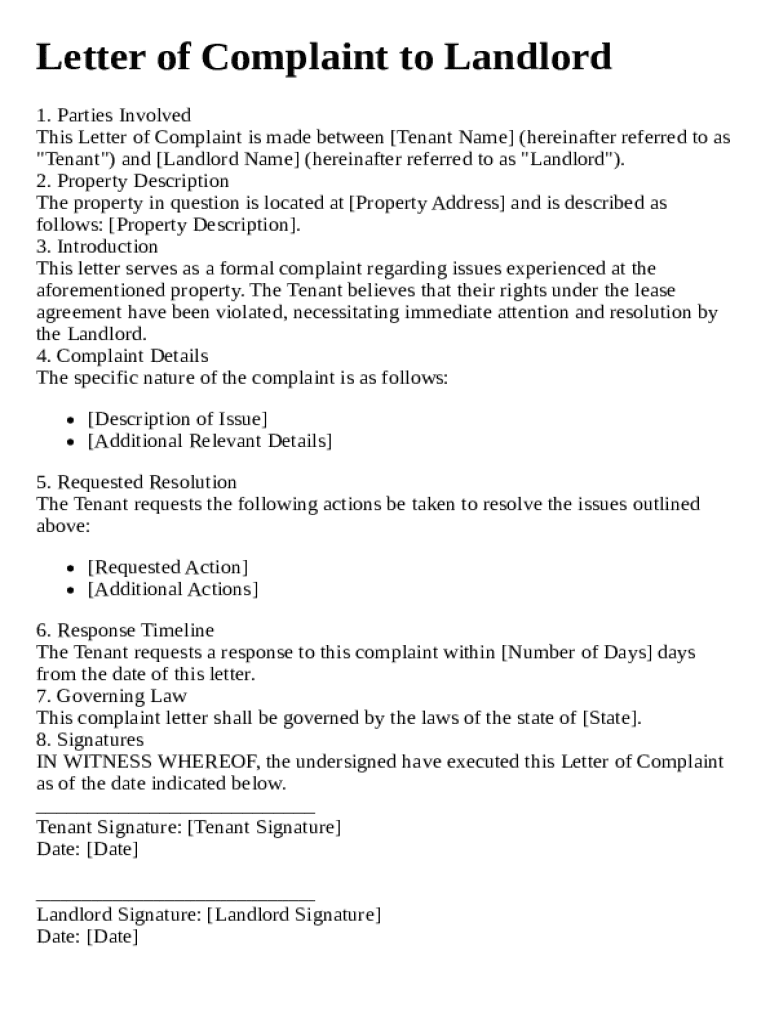 Get the free Letter of Complaint to Landlord Template