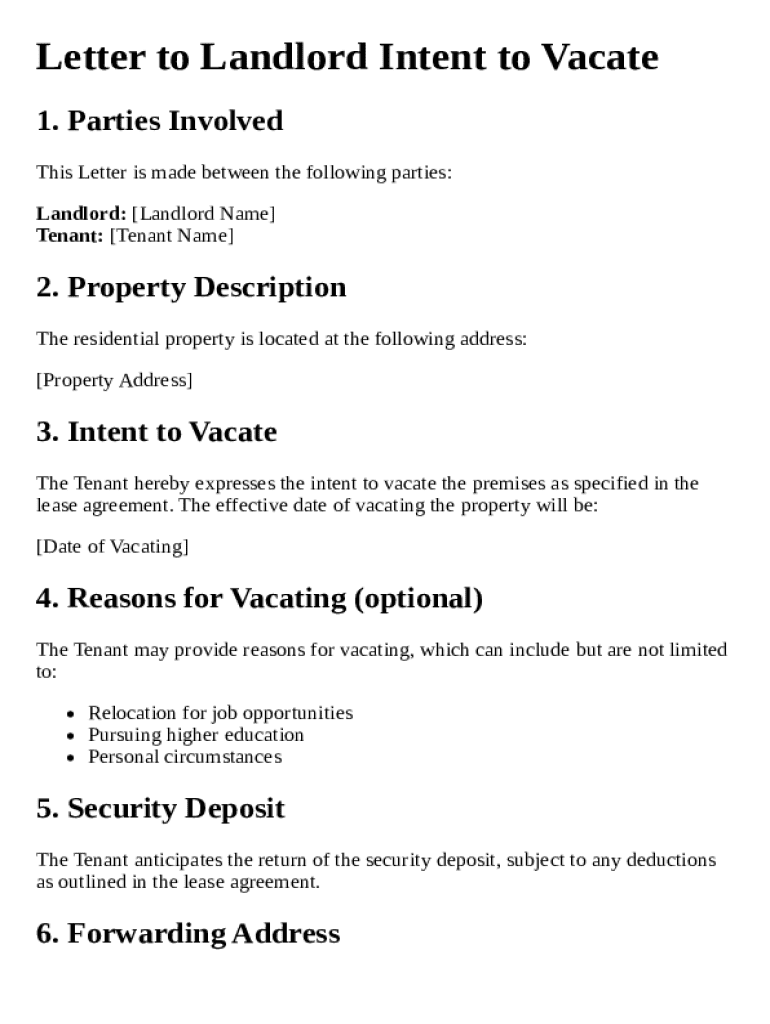 Get the free Letter to Landlord Intent to Vacate Template