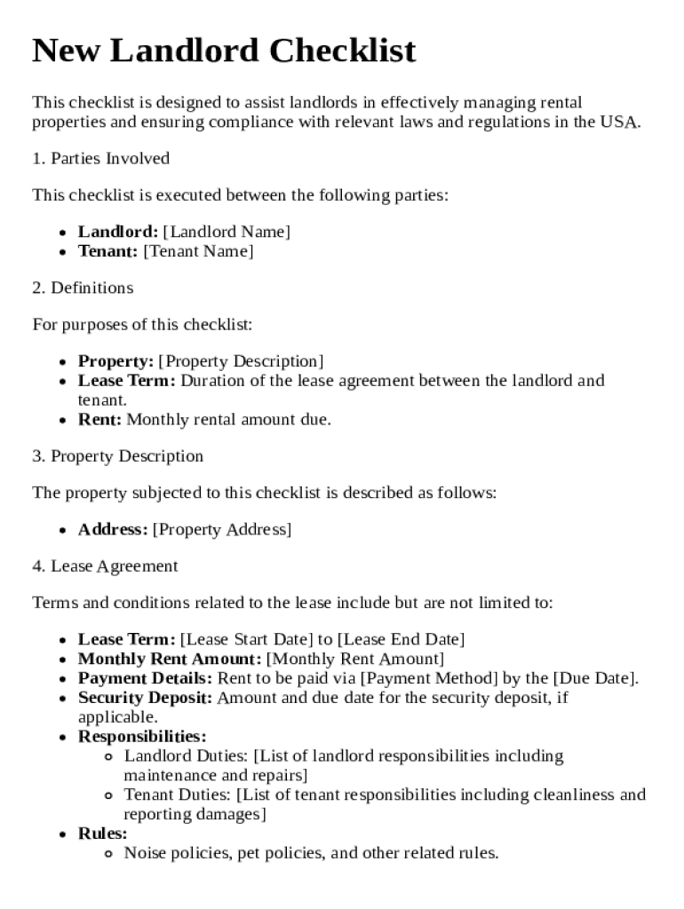 A new landlord checklist template form is essential for ensuring a smooth rental experience between landlords and tenants. This guide will walk you through the necessary components and steps to create a comprehensive checklist, helping you manage responsibilities and expectations effectively.