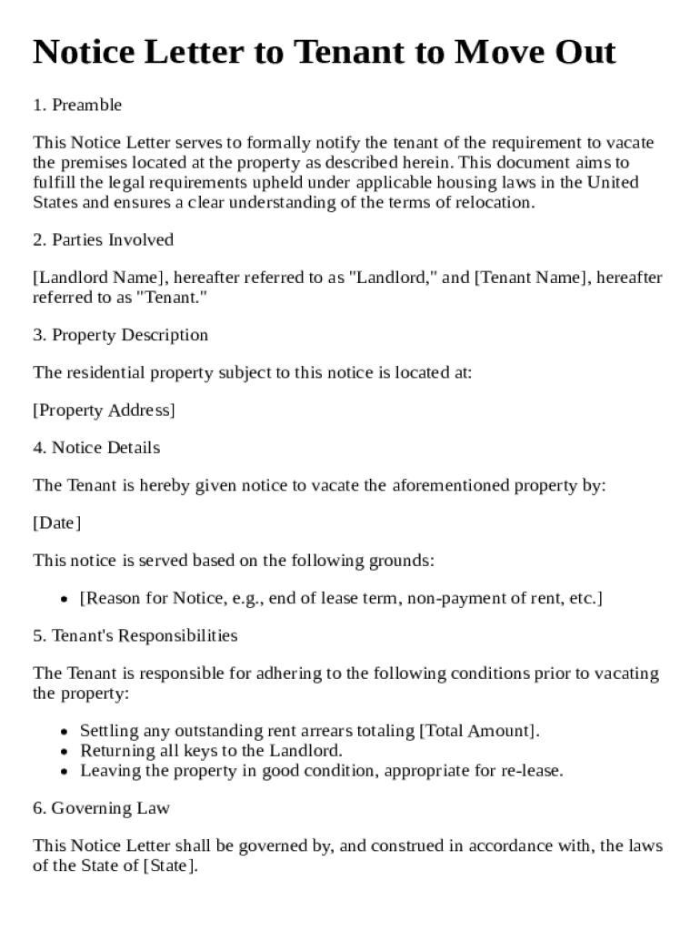 What should be included in a Notice Letter to Tenant to Move Out Template?