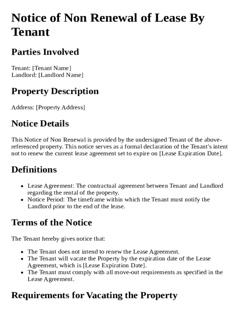 What is a Notice of Non Renewal of Lease By Tenant Template?