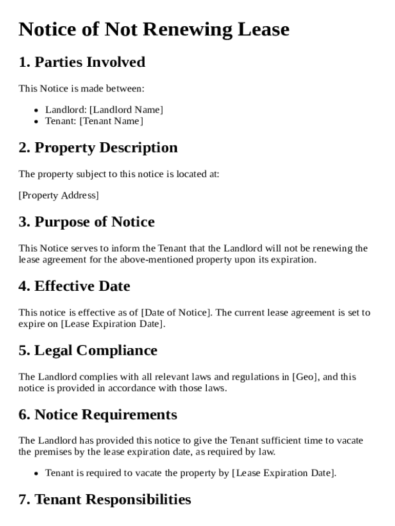 Get the free Notice of Not Renewing Lease Template