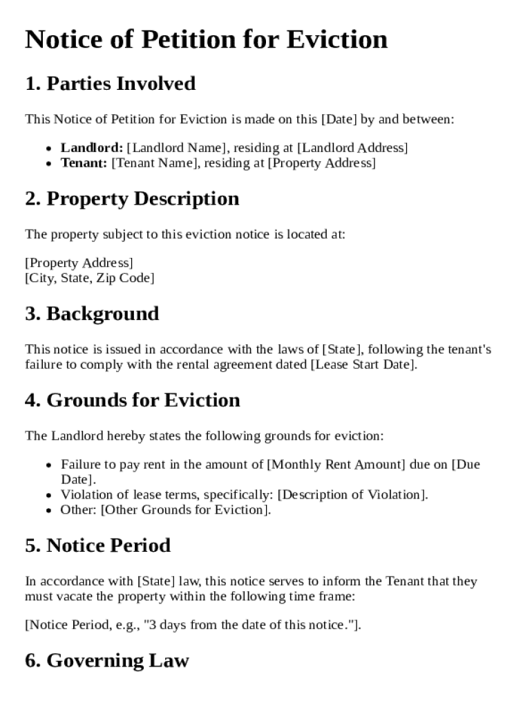 Get the free Notice of Petition for Eviction Template