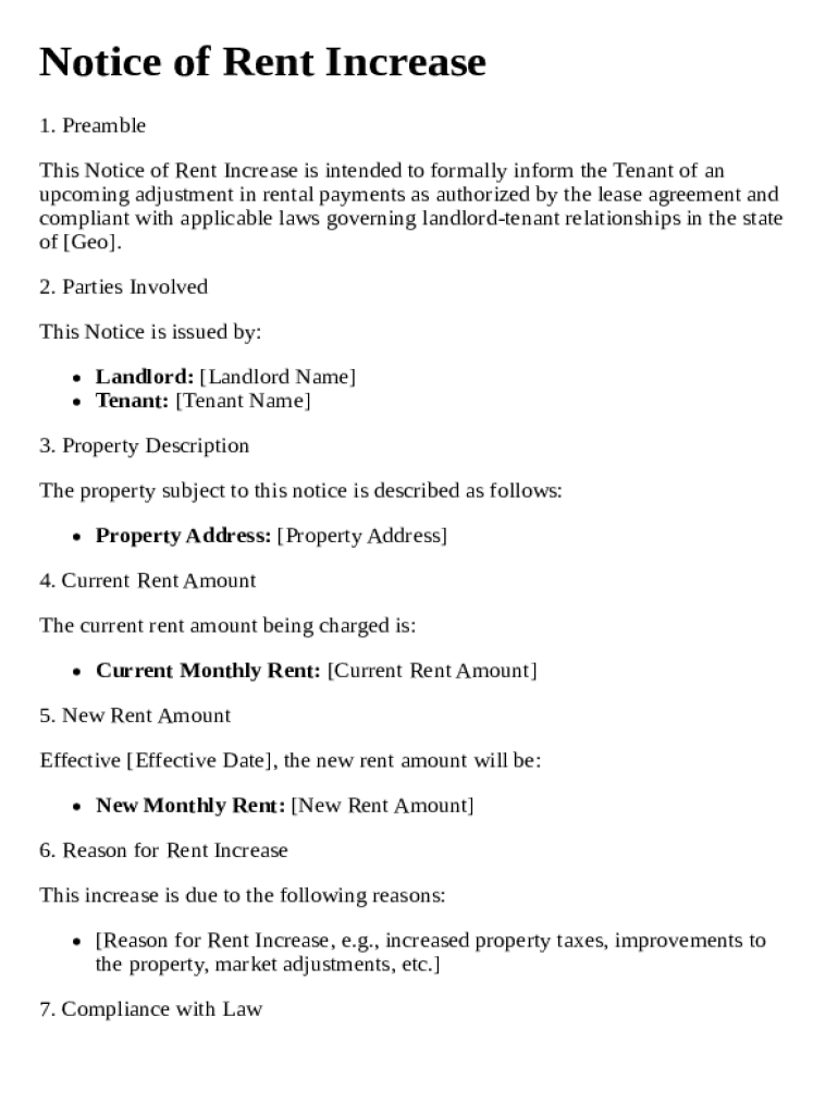 A notice of rent increase is a formal document that informs tenants of an upcoming increase in their rent amount.