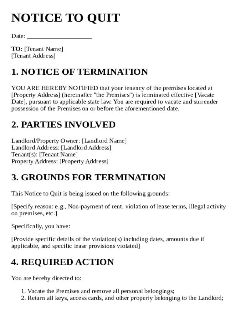 What is a Notice to Quit Eviction Template and why is it important?