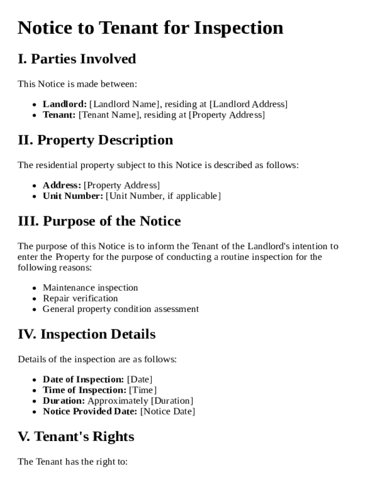 Where can I find a reliable Notice to Tenant for Inspection Template?