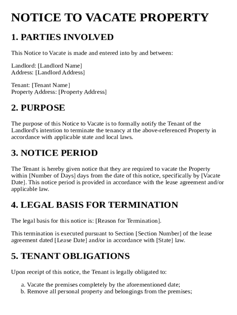 What is a Notice to Vacate Property Template and why is it important?