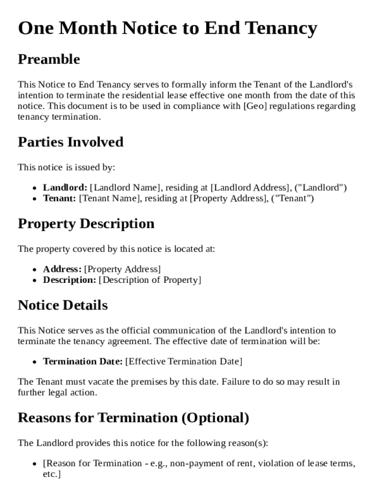 What is a One Month Notice to End Tenancy Template and why do I need one?