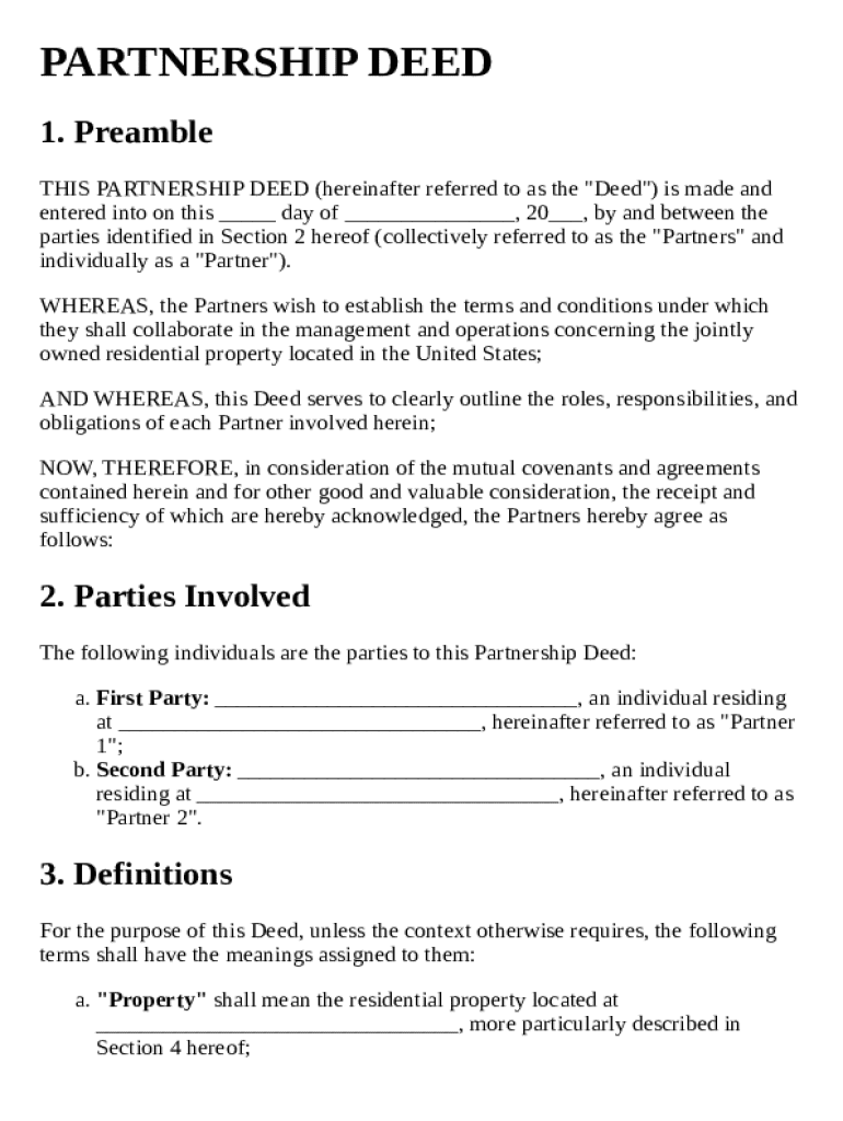 A partnership deed template form is essential for formalizing a business partnership. It outlines the roles, responsibilities, and contributions of each partner, ensuring clarity and legal protection. In this guide, we will provide an in-depth understanding of how to create and fill out this document efficiently.