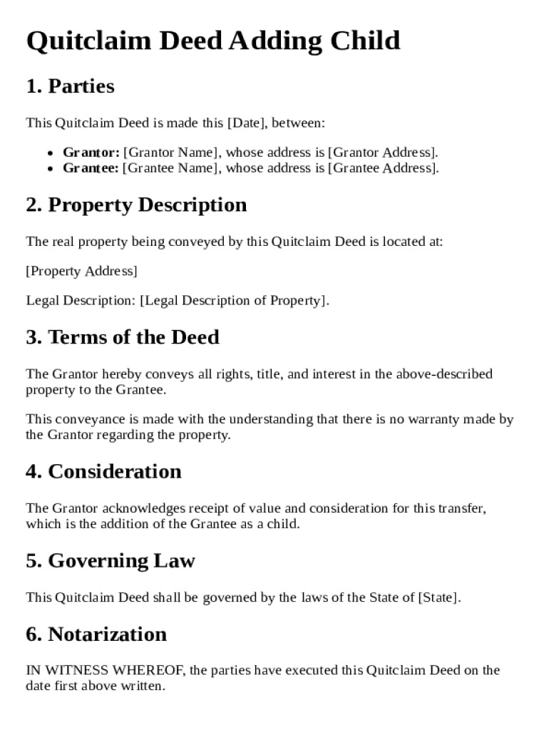 Is a Quitclaim Deed Adding Child Template legally binding?
