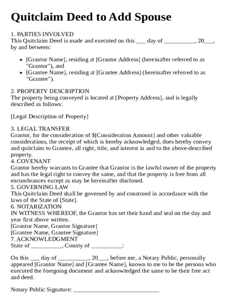 Why would I need a Quitclaim Deed to Add Spouse Template?