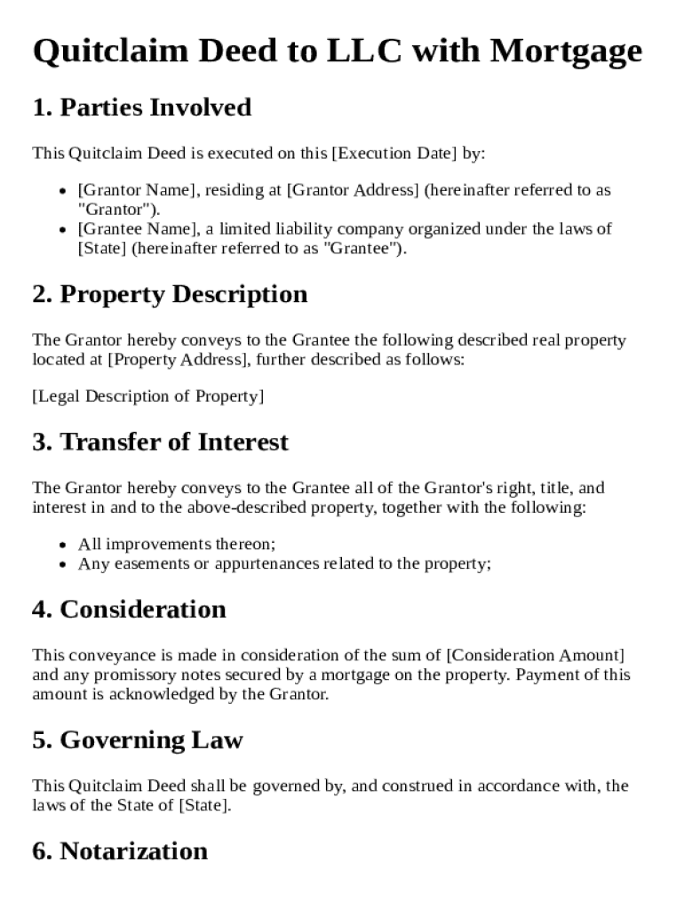 What is a Quitclaim Deed to LLC with Mortgage Template?