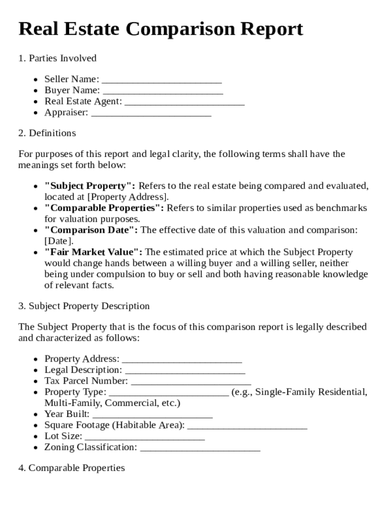 A real estate comparison report serves as a crucial document for assessing property values in the market. Its primary purpose is to provide a detailed analysis that benefits sellers, buyers, real estate agents, and appraisers. Accurate data influences strategic decisions, ensuring all stakeholders are aligned on property valuation.