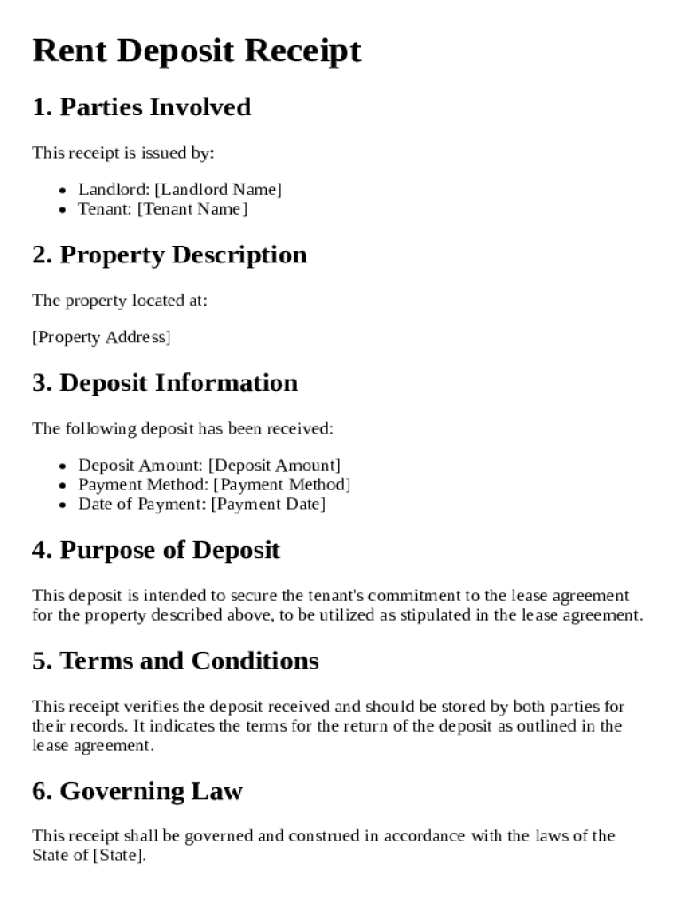 Comprehensive Guide to Rent Deposit Receipt Template Form