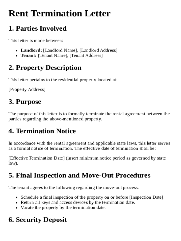 Get the free Rent Termination Letter Template