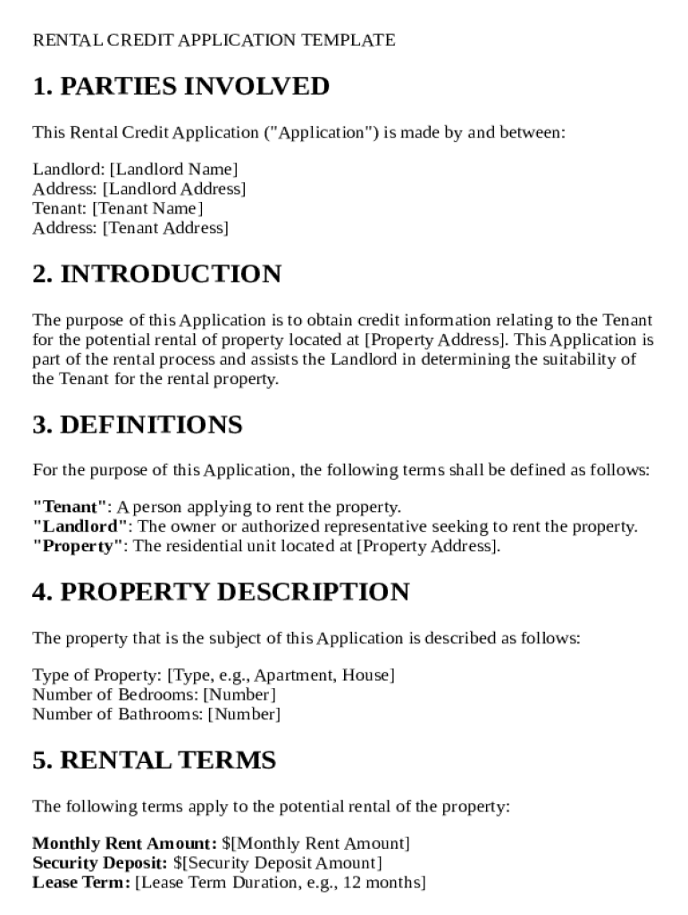 A rental credit application template is a standardized form used by landlords or property managers to assess a prospective tenant's creditworthiness and rental history.