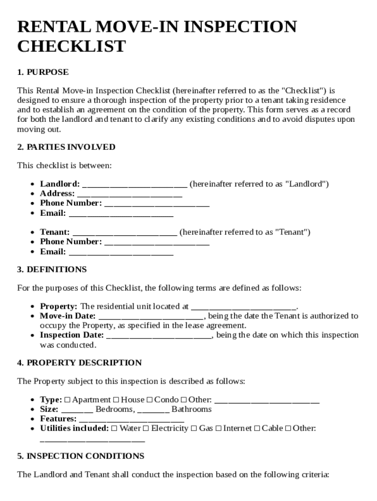 Get the free Rental Move in Inspection Checklist Template