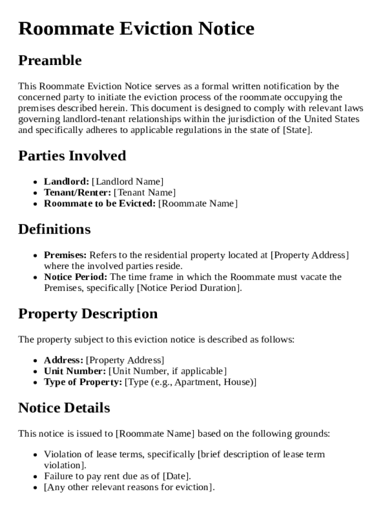 Comprehensive Guide to Roommate Eviction Notice Template Form