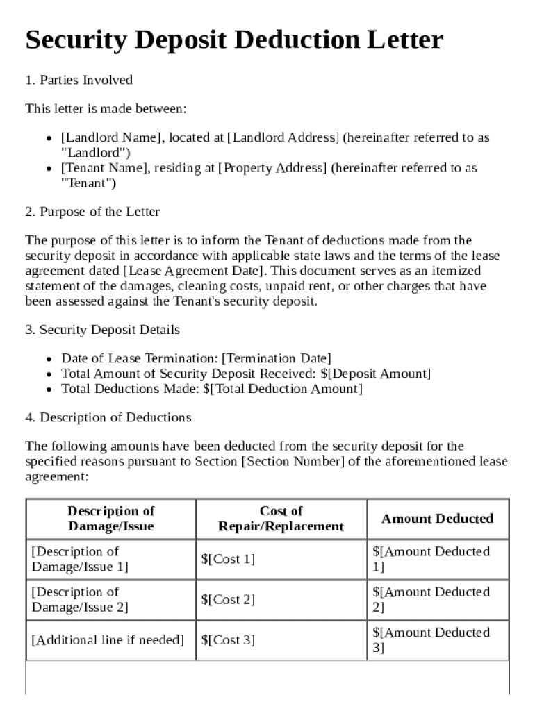 Where can I find a reliable Security Deposit Deduction Letter Template?
