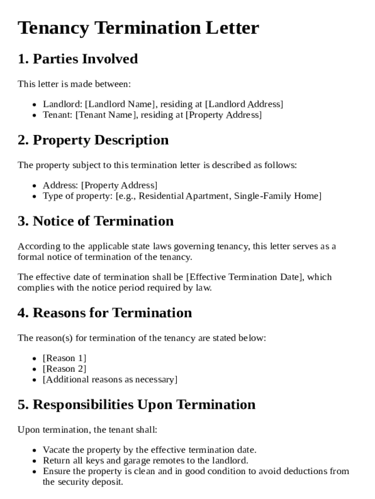 A tenancy termination letter template is a formal document used by landlords or tenants to officially end a rental agreement.
