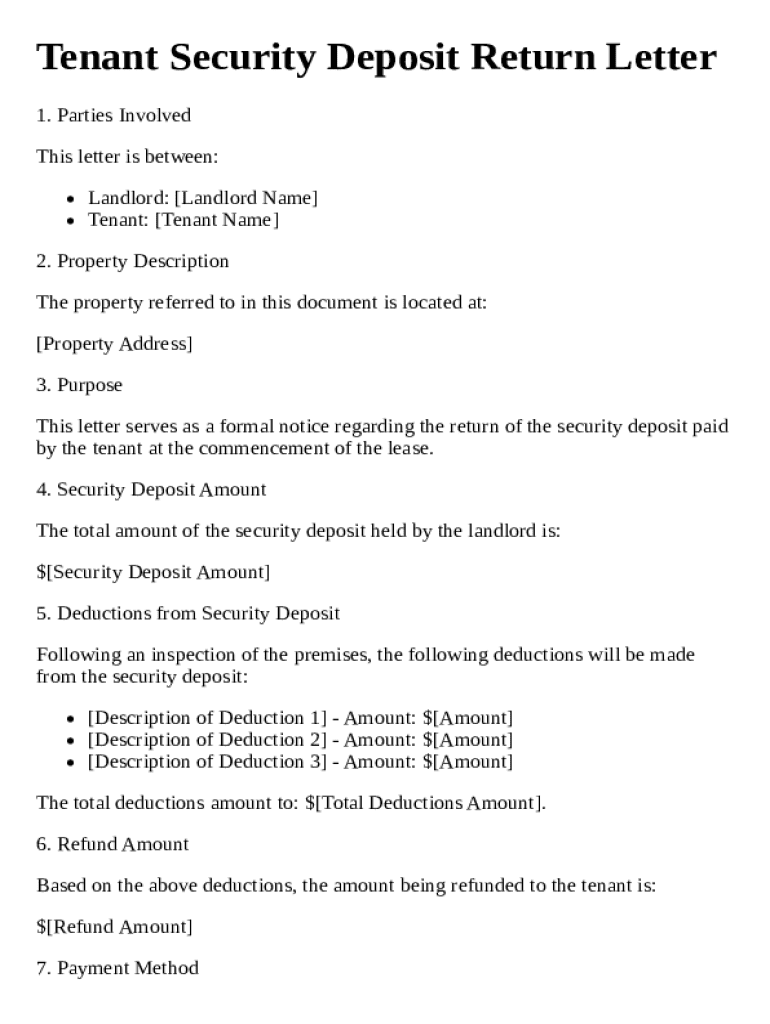 Get the free Tenant Security Deposit Return Letter Template