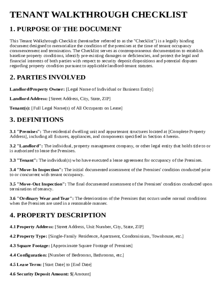 A tenant walkthrough checklist template is a guided document used to assess and document the condition of a rental property before a tenant moves in or out.