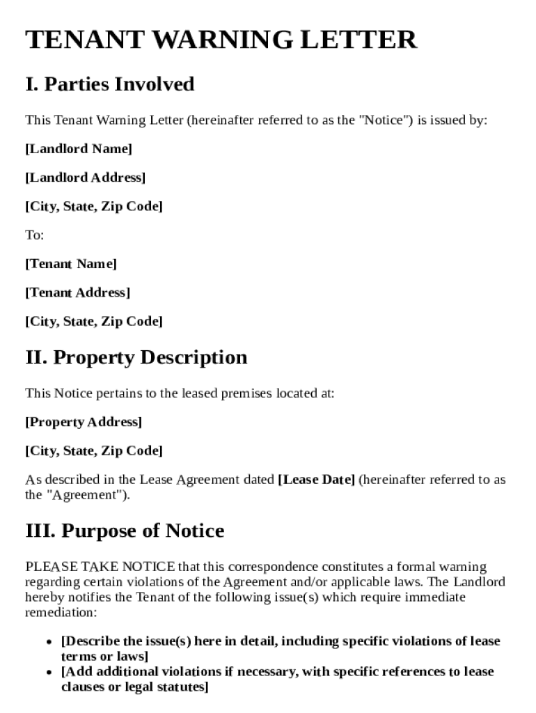 Get the free Tenant Warning Letter Template
