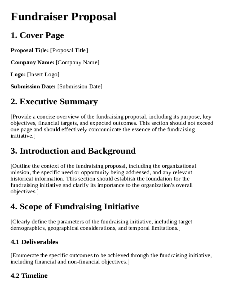 This document outlines a comprehensive proposal for a fundraising initiative, detailing objectives, strategies, budget, risks, and a governance framework.