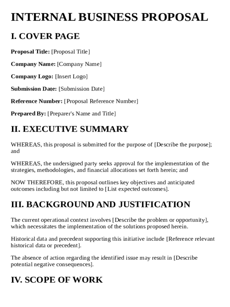 An internal business proposal template is a structured document used by employees within an organization to propose projects, initiatives, or changes to business processes for approval and support.