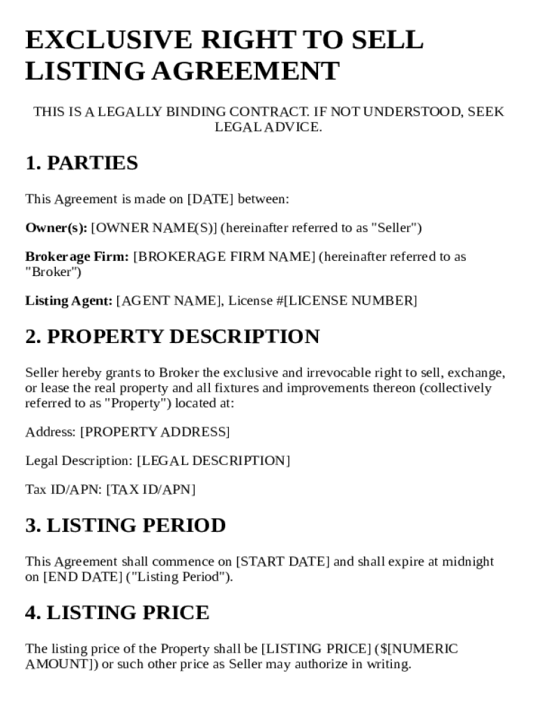 The exclusive right to sell listing agreement is a crucial document in real estate transactions. It grants a brokerage firm exclusive rights to sell a property for a designated period.