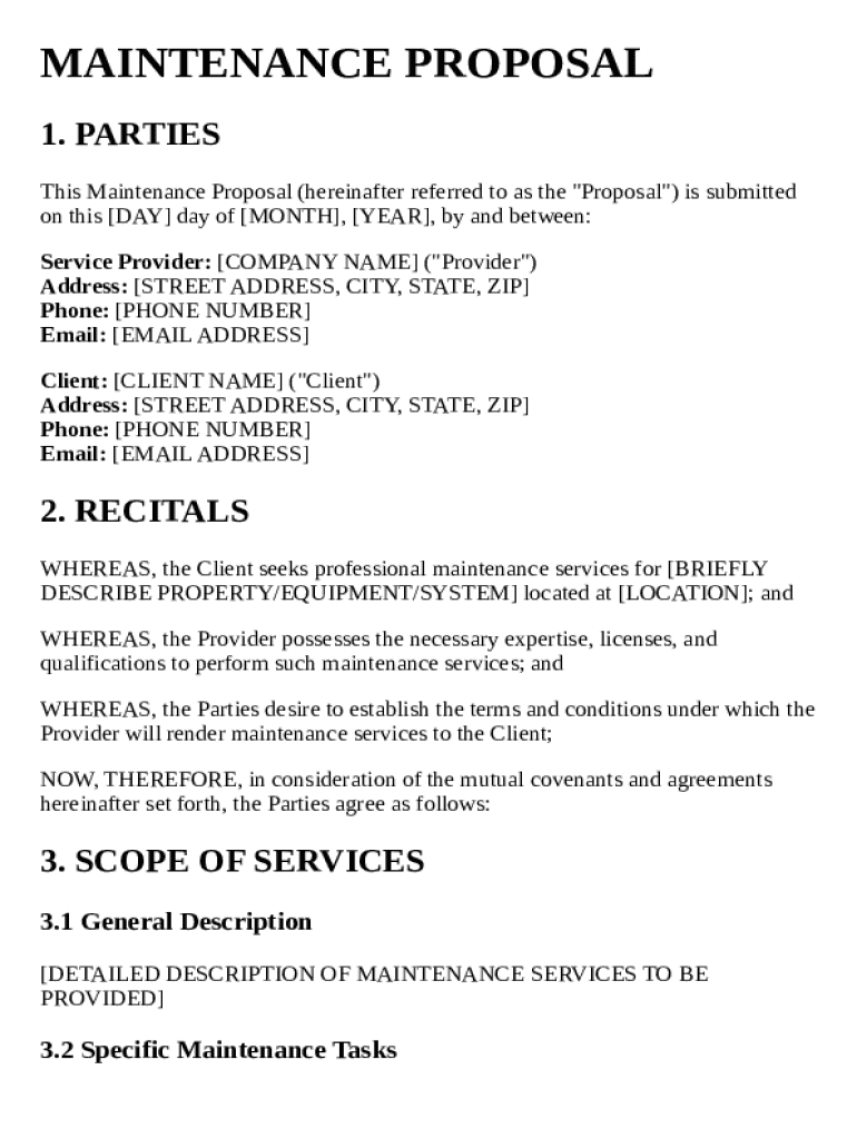 Get the free Maintenance Proposal Template