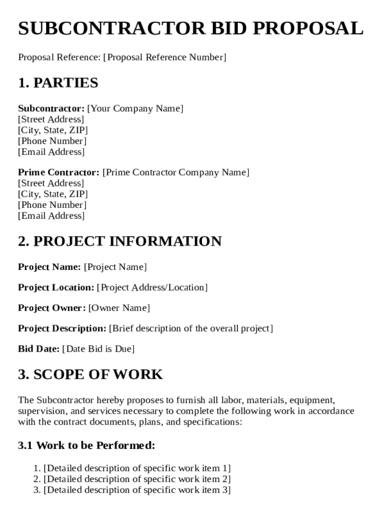 Where can I find a reliable Subcontractor Bid Proposal Template?