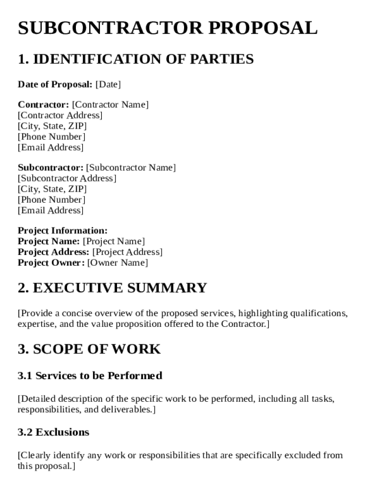 Filling out a subcontractor proposal template form is a vital step for subcontractors looking to win contracts. A well-structured proposal can showcase your qualifications, narrowly outline project scopes, and demonstrate your professionalism. In this guide, we will walk you through the essential elements of crafting your proposal effectively.