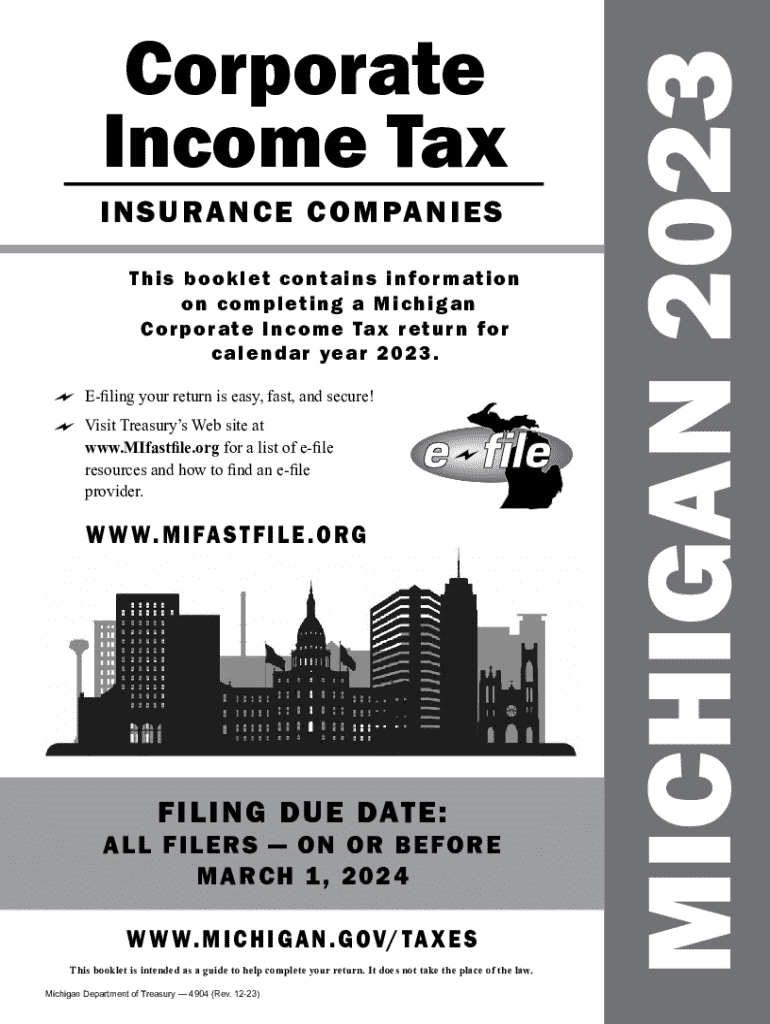 Get the free 4904, Michigan Corporate Income Tax Book for Insurance Companies