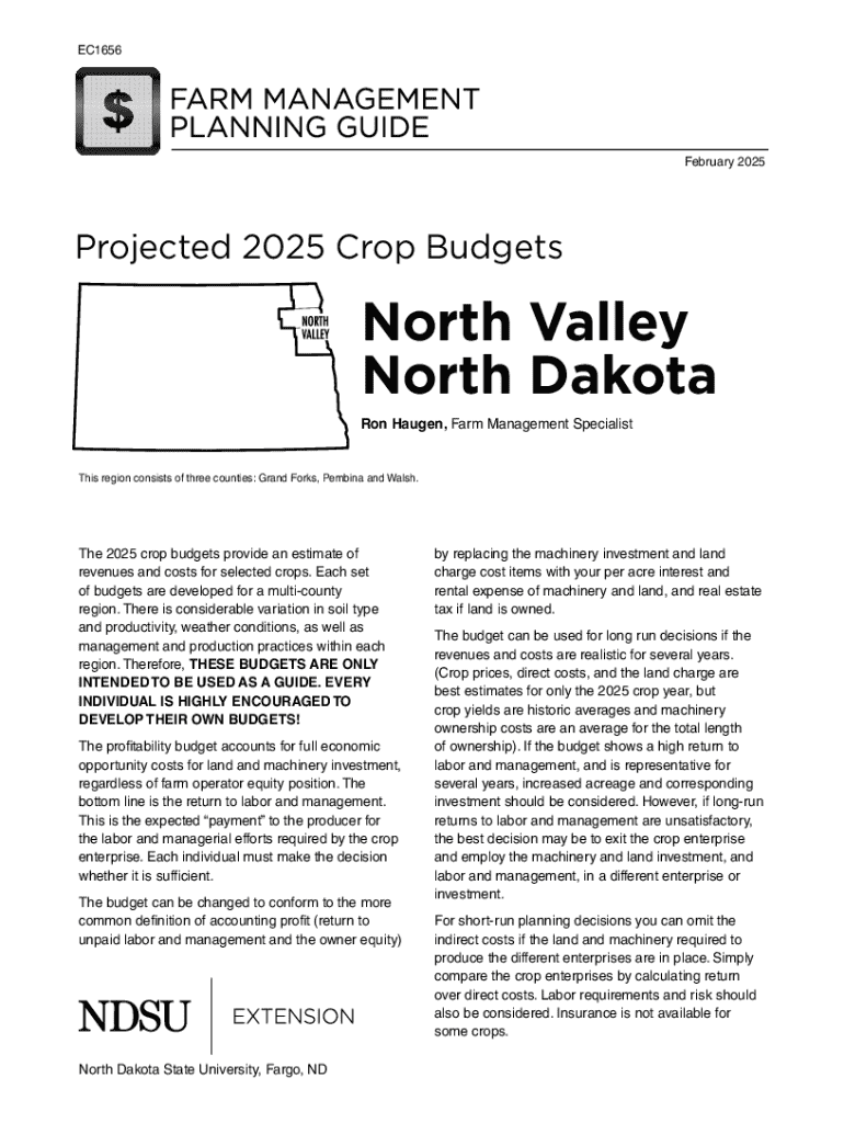 Get the free NDSU Crop Budget Projections Show Minimal Returns for ...