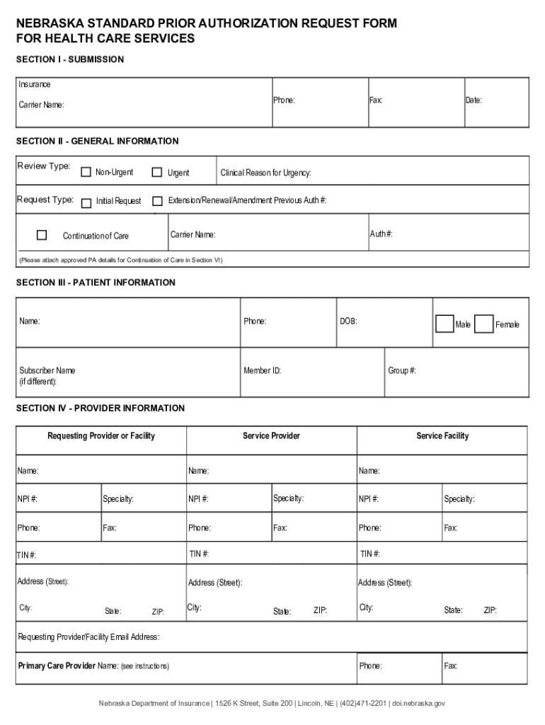 How to fill out nebraska standard prior authorization