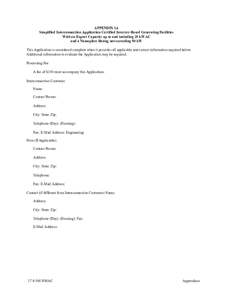 APPENDIX 1A Simplified Interconnection Application Certified InverterBased Generating Facilities With an Export Capacity up to and including 25 kW AC and a Nameplate Rating not exceeding 50 kW This