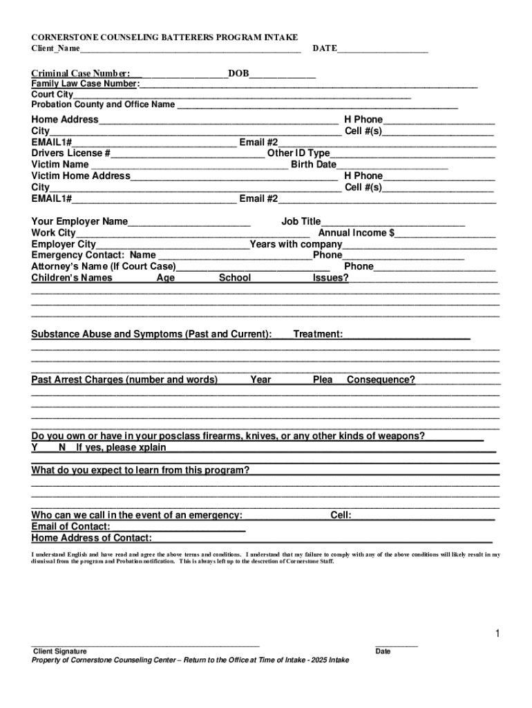The Cornerstone Counseling Form is a vital tool in the counseling process, serving as a foundational document that captures essential client information and sets the stage for effective therapy. By compiling personal data, health history, and contact information, this form acts as a roadmap for the counselor, ensuring they have a comprehensive understanding of each client's background and needs.