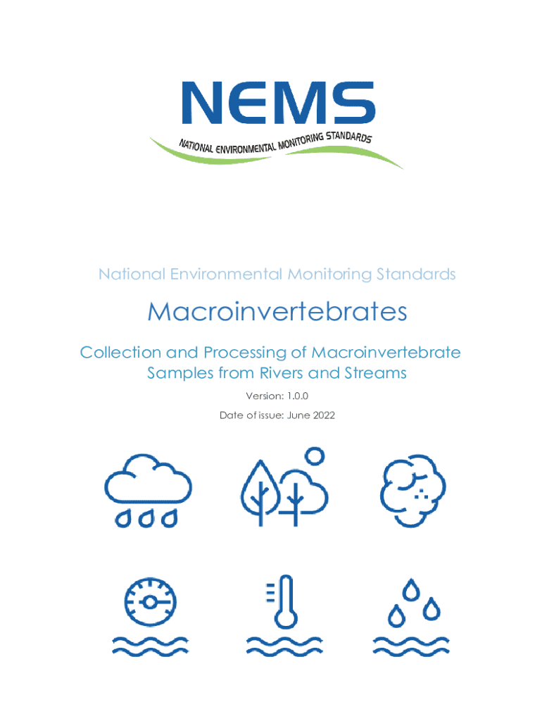 National Environmental Monitoring StandardsMacroinvertebrates Collection and Processing of Macroinvertebrate Samples from Rivers and Streams Version: 1.0.0 Date of issue: June 2022Disclaimer The Ministry